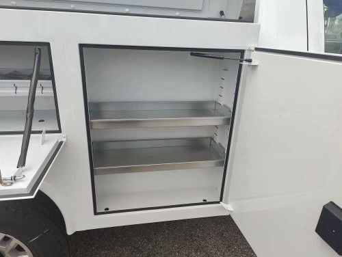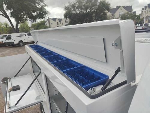 Summit White 2026 Chevrolet Silverado 2500HD Work Truck RWD 10-Speed Automatic 6.6L V8 10-Speed Automatic, Black Cloth. Chassis offers Chrome Bumper Rear Vision Camera, All Terrain Tires. Chassis is Up-fitted with a royal Truck Body Service Body. Unit is built with Flip Top Compartments with Aluminum Tread Plate Covers and also has the Internal 98" Master Lock offering Pad lock security of your product and Tools. Come take a look today....this Truck is ready to go to work.
