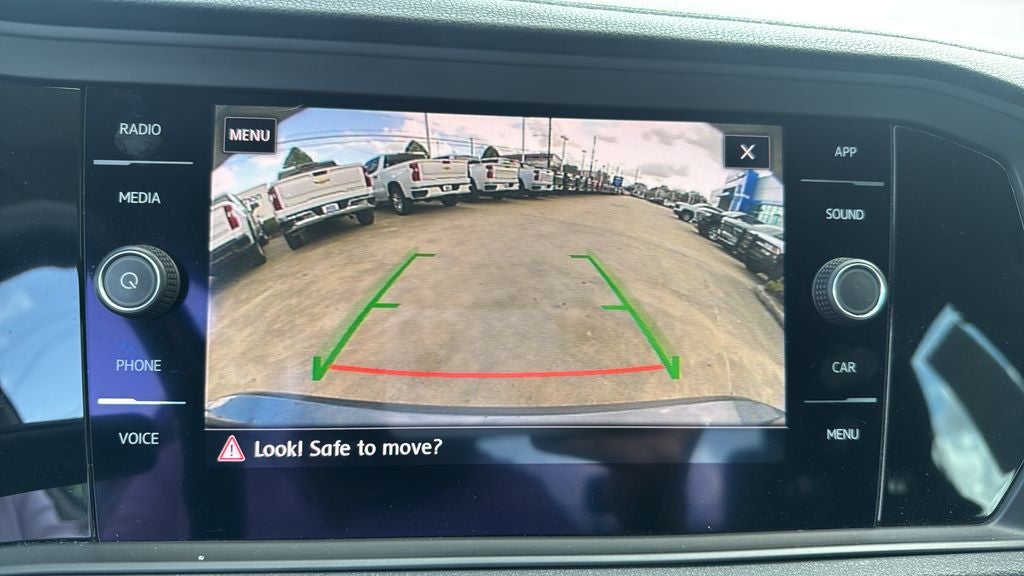 4-Wheel Disc Brakes, 9 Speakers, ABS brakes, Air Conditioning, Alloy wheels, AM/FM radio: SiriusXM, Auto High-beam Headlights, Auto-dimming Rear-View mirror, Automatic temperature control, Brake assist, Bumpers: body-color, Delay-off headlights, Driver door bin, Driver vanity mirror, Dual front impact airbags, Dual front side impact airbags, Electronic Stability Control, Emergency communication system: VW Car-Net services (capabilities require enrollment or subscription), Exterior Parking Camera Rear, Front anti-roll bar, Front Bucket Seats, Front Center Armrest, Front dual zone A/C, Front reading lights, Front wheel independent suspension, Fully automatic headlights, Heated door mirrors, Heated Front Comfort Seats, Heated front seats, Illuminated entry, Leather Shift Knob, Low tire pressure warning, Occupant sensing airbag, Outside temperature display, Overhead airbag, Overhead console, Panic alarm, Passenger door bin, Passenger vanity mirror, Perforated V-Tex Leatherette Seat Trim, Power door mirrors, Power moonroof, Power steering, Power windows, Radio data system, Radio: Composition Media w/8 Touchscreen, Rain sensing wipers, Rear anti-roll bar, Rear reading lights, Rear seat center armrest, Rear window defroster, Remote CD player, Remote keyless entry, Speed control, Speed-sensing steering, Split folding rear seat, Steering wheel mounted audio controls, Tachometer, Telescoping steering wheel, Tilt steering wheel, Traction control, Trip computer, Variably intermittent wipers, and Wheels: 16 Two-Tone Rama Black.